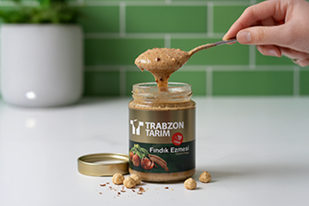 Trabzon Tarım %70 Fındık Ezmesi (Parçacıklı), yüksek fındık oranı ve yoğun kıvamıyla fındık lezzetini daha belirgin hissetmek isteyenler için hazırlanmıştır. Dengeli tat profili sayesinde hem kahvaltılarda hem de gün içinde pratik bir atıştırmalık olarak tercih edilebilir.